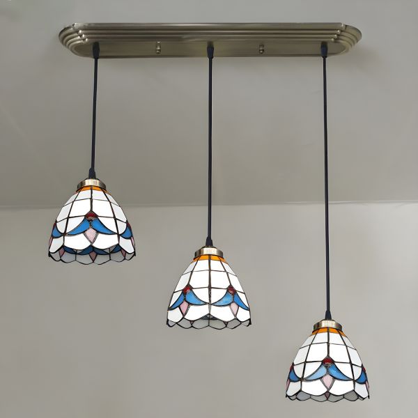 Vintage Stained Glass 3-Light Linear Pendant, Adjustable Kitchen Island Fixture with Hand-Cut Shades - 110V-120V Bronze Lily