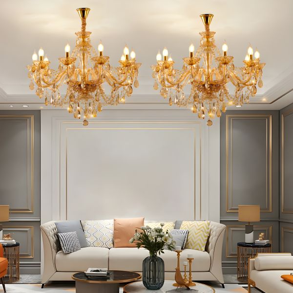 Vintage French Empire Amber Crystal Chandelier, K9 Glass Candle Pendant Light Fixture for Dining Room - 110V-120V 10