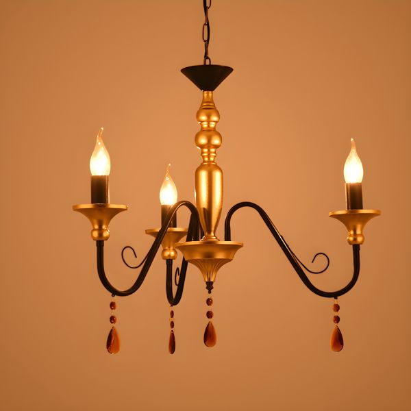 Gold 3-Head Ceiling Chandelier Classic Metallic Candelabra Hanging Pendant with Crystal Draping