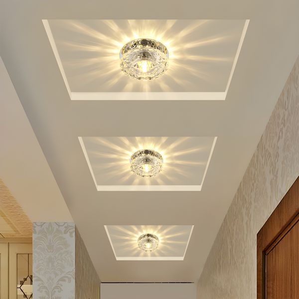 Contemporary Glam Crystal Mini Flush Mount Light, Starburst LED Accent for Hallway & Foyer - Clear 110V-120V White Light 3w