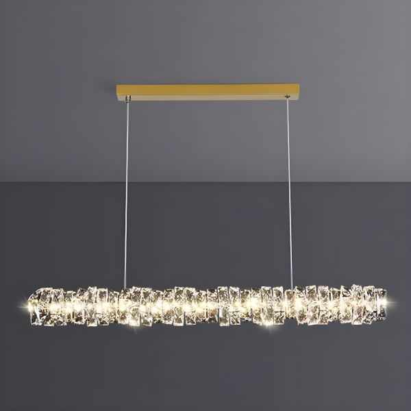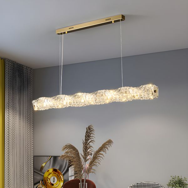 Contemporary Linear Crystal Island Chandelier, Textured Ice Glass Pendant Light for Dining Room - Gold 31.5" 110V-120V