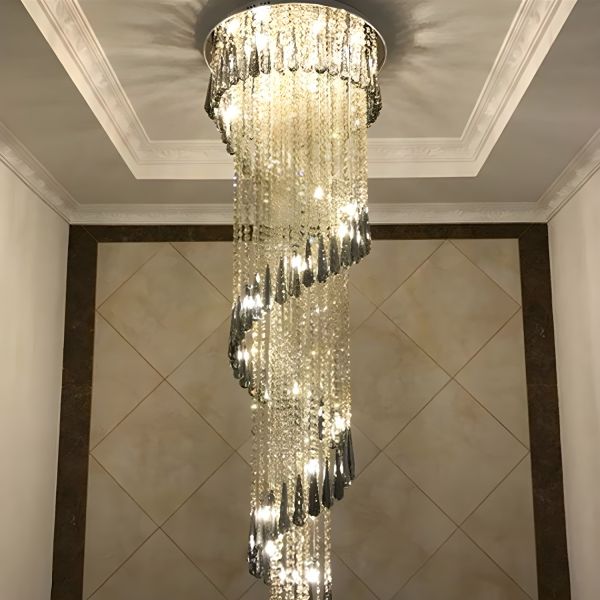 Modern Crystal Spiral Chandelier, Flush Mount Raindrop Ceiling Light for High Foyers and Staircases - Stainless/Steel 110V-120V