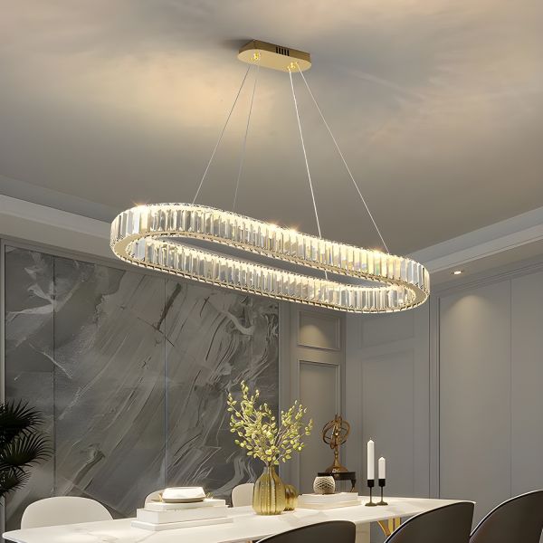 Contemporary Glam Crystal Oval Chandelier Dimmable Gold LED Pendant Light - 31.5" Design 2 110V-120V