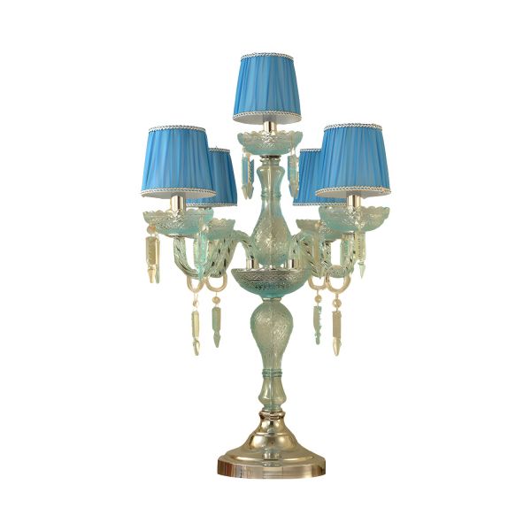 European Crystal Table Lamp, Large Candelabra Bedside Light with Blue Pleated Shades and Glass Pendants - 110V-120V Blue 5