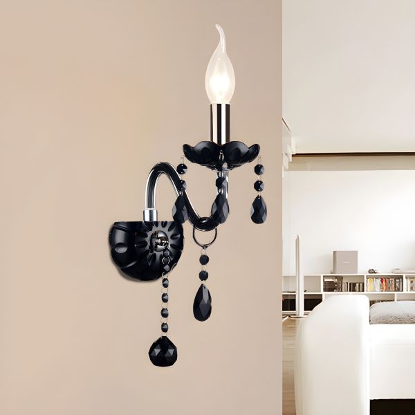 Elegant Black Glass Wall Sconce, Gothic Glam Fixture with Crystal Drops - Black 110V-120V Shadeless 1