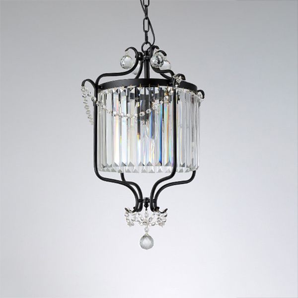 3 Heads Crystal Hanging Light Modern Pendant Lighting for Living Room Dinning Room - 110V-120V Cylinder Black Round