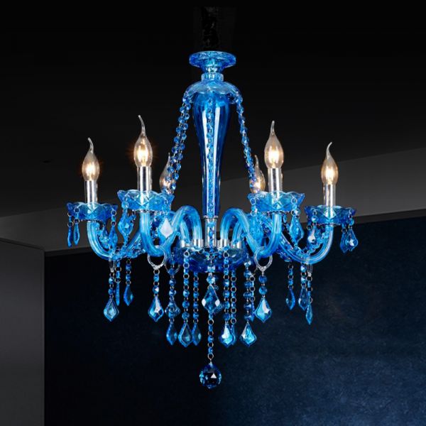 Baroque Blue Crystal Chandelier, Candle-Style Ceiling Light with Teardrop Accents - Blue 6 110V-120V
