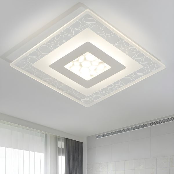 Contemporary Geometric Square LED Flush Mount Ceiling Light, Low Profile Acrylic Fixture for Bedroom - Clear 110V-120V 8" White Light