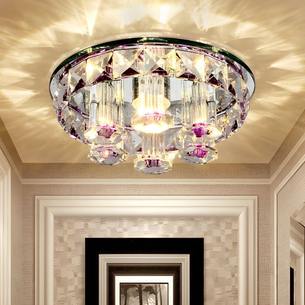 Glam Crystal Flush Mount Ceiling Light, Round LED Fixture for Bedroom or Hallway - Purple 110V-120V White Light