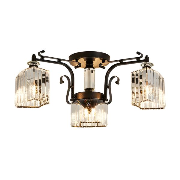 Contemporary Crystal Semi Flush Mount Chandelier, Black Metal Ceiling Light with Geometric Prisms - Black 110V-120V 3