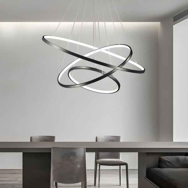 Minimalist LED Ring Chandelier, Contemporary Geometric Pendant Light, Adjustable Height Black Finish - 110V-120V Black 23.5" Natural Light