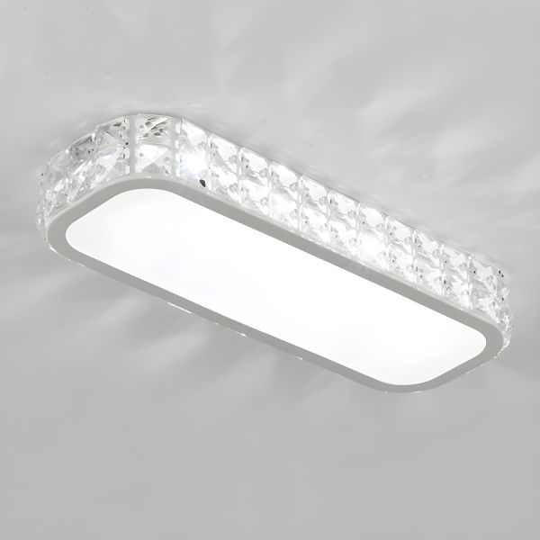 Glam K9 Crystal LED Flush Mount Light, Rectangular Geometric Ceiling Fixture - White 110V-120V White Light Small