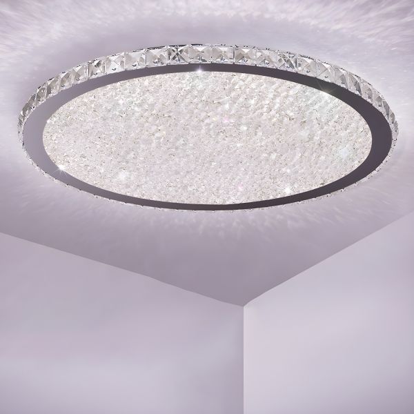Luxe Crystal Flush Mount Ceiling Light, Round Stainless Steel LED Fixture with Sparkling Crushed Diamond Effect - Stainless/Steel 110V-120V 14" White Light