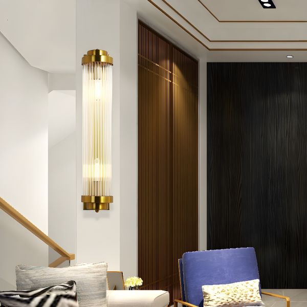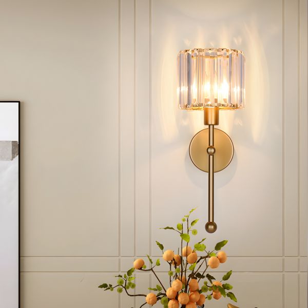 Mid-Century Crystal Wall Sconce, Luxe Metal Vanity Light Fixture with Vertical Rod Design for Hallway and Bedroom - 110V-120V Gold
