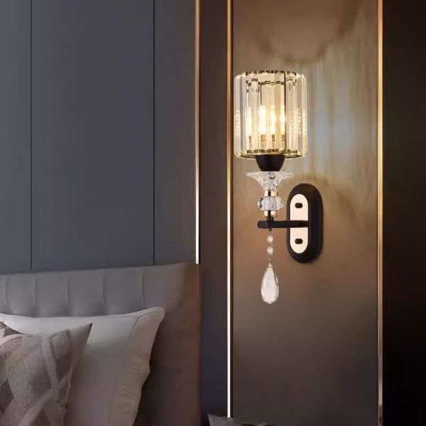 Luxe Crystal Wall Sconce Lighting Fixture with Faceted Shade and Teardrop Accent - 110V-120V
