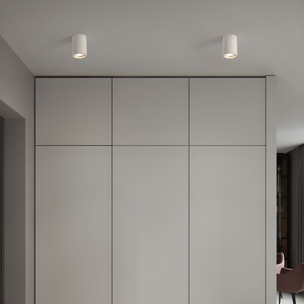 Industrial Concrete Cylinder Flush Mount Ceiling Light for Hallway - 4" White 110V-120V