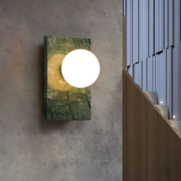 Mid-Century Real Marble Wall Sconce, Brass Vanity Light with Glass Globe Shade - 110V-120V Green Rectangle