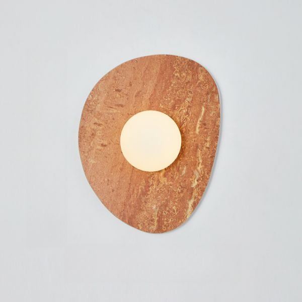 Japandi Natural Travertine Wall Sconce, Minimalist Stone & Wood Fixture with Warm Ambient Downlight - 110V-120V 6.5" Square