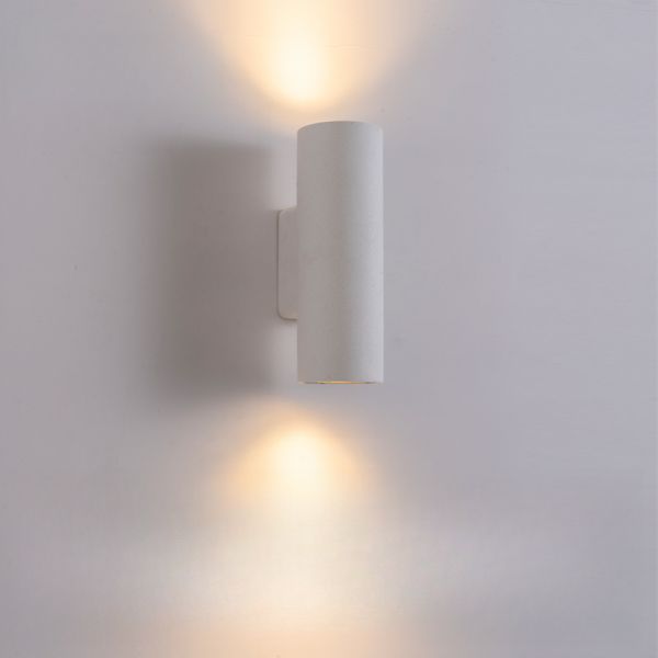 Industrial Cement Style Wall Sconce, Textured Stone Look Up and Down Light Fixture for Patio or Hallway - White 110V-120V Cylinder White Light