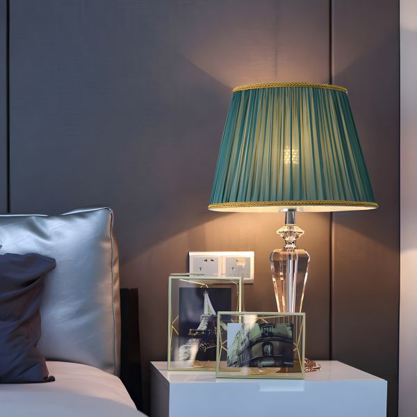 Elegant K9 Crystal Table Lamp with Pleated Fabric Shade and Faceted Body - 110V-120V Green