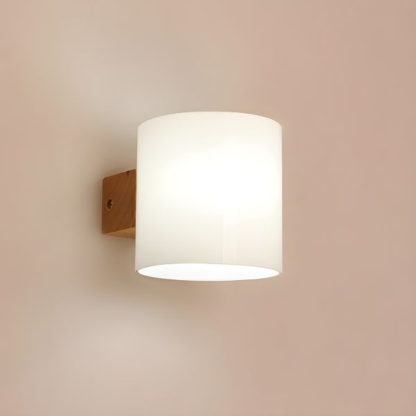 Scandinavian Minimalist Wood Wall Sconce, Milky Glass Shade for Soft Ambient Glow, Bedroom Fixture - 110V-120V