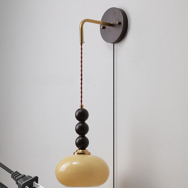 Mid-Century Modern Wall Sconce Light, Retro Glass Shade with Wood Bead Accents for Bedroom Hallway - 110V-120V 7" Rocker Cream