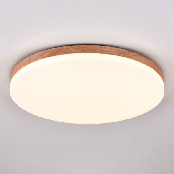 Scandinavian Solid Wood Flush Mount Ceiling Light, Ultra-Slim Low Profile LED Fixture for Bedroom - 110V-120V Natural Finish Circle 9"