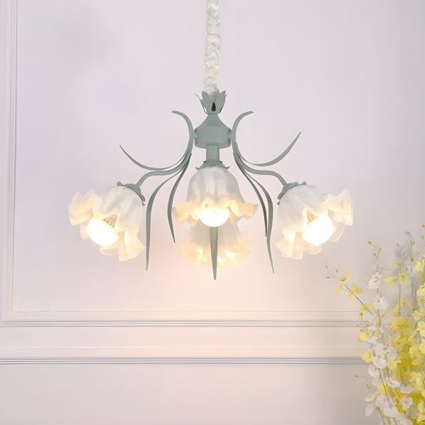 French Country Floral Chandelier with Frosted Lily Glass Shades - 110V-120V Green 4