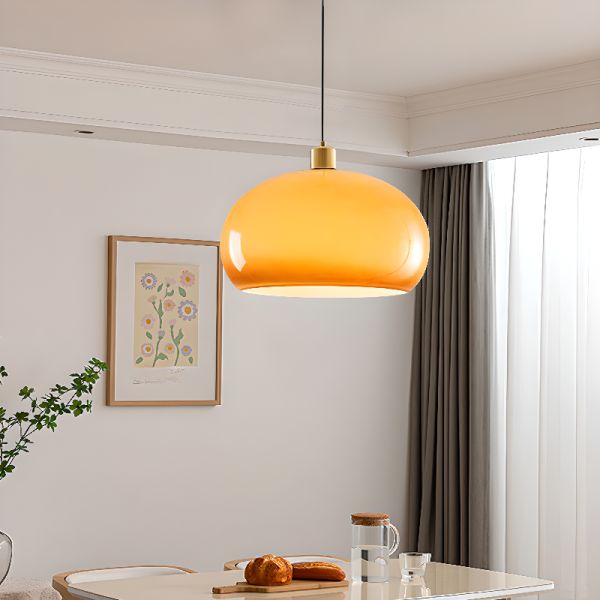 Mid-Century Modern Gradient Glass Pendant Light, Minimalist Dome Fixture for Dining & Kitchen - 15" Orange 110V-120V