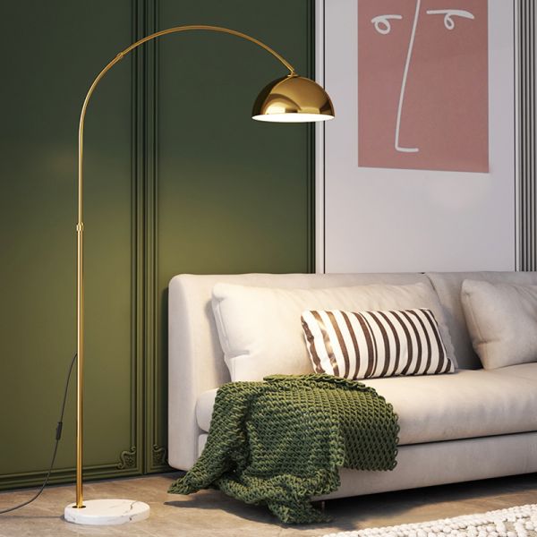 Mid-Century Arched Floor Lamp with Solid Marble Base - Adjustable Standing Reading Light with Foot Pedal for Living Room - 110V-120V Gold Dome