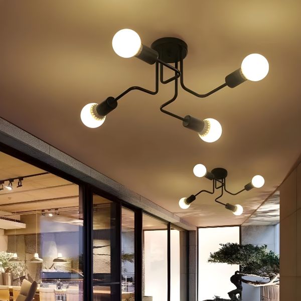 Industrial Semi Flush Mount Ceiling Light, Metal Multi-Arm Sputnik Fixture with Curved Rods - 4 Black 110V-120V