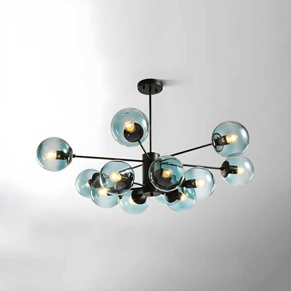 Mid-Century Sputnik Chandelier 12-Light Glass Globe Ceiling Fixture Black Semi Flush Mount - 110V-120V Blue