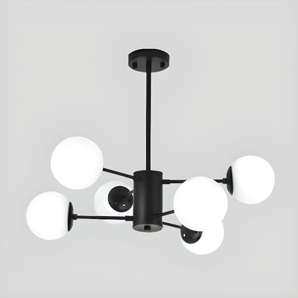 Mid-Century Sputnik Chandelier, Branching Ceiling Light Fixture with Glass Globe Shades - 110V-120V Black 6 Milk White