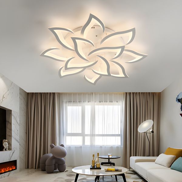 Contemporary Nordic Flower LED Ceiling Light, Sculptural Acrylic Petal Flush Mount Fixture for Living Room - 12 110V-120V White Light