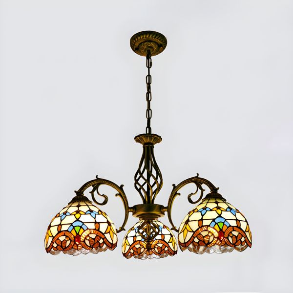 Vintage Stained Glass Chandelier, Antique Bronze Ceiling Fixture with Mosaic Shades for Dining Room - 110V-120V Beige 3