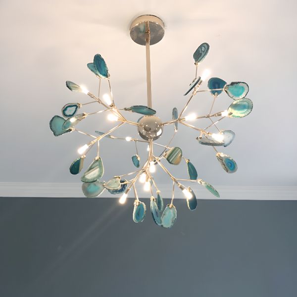Mid-Century Glam Agate Chandelier with Natural Geode Slices and Gold Finish - 24" 110V-120V