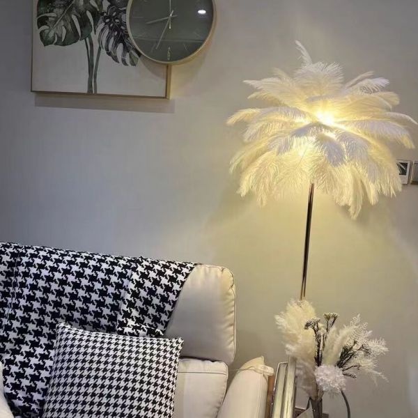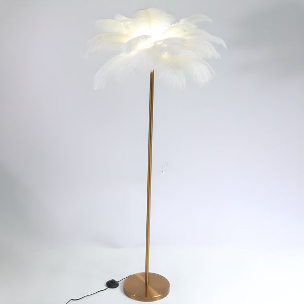 Luxe Feather Floor Lamp with Gold Finish Base, Soft Ambient Standing Light for Living Room - 110V-120V White
