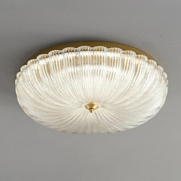 Mid-Century Ribbed Glass Flush Mount Ceiling Light, Gold Finish Fixture for Bedroom Hallway - 110V-120V 8"