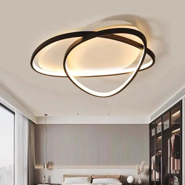 Contemporary Geometric LED Flush Mount Ceiling Light, Interlocking Ring Overhead Fixture with Adjustable Ambience for Bedroom - 110V-120V 21" Warm Light