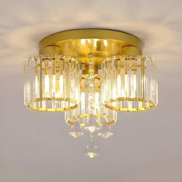 Luxe Crystal Flush Mount Ceiling Light, Contemporary Round Chandelier Fixture with Faceted Shades - Gold 110V-120V 3