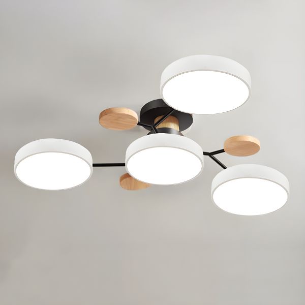 Scandinavian LED Flush Mount Ceiling Light, Geometric Sputnik Fixture with Solid Wood Accents, Low Profile Ambient Lighting - 4 White 110V-120V