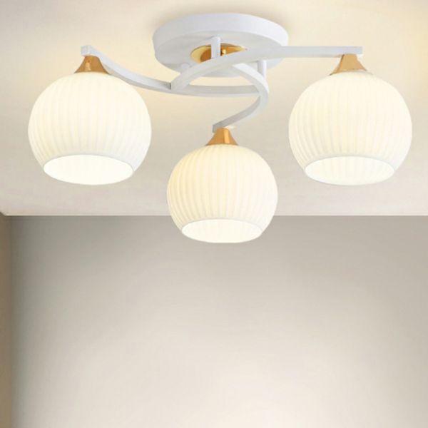 Scandinavian Semi Flush Mount Ceiling Light, Minimalist White Fixture with Ribbed Shades for Bedroom Living Room - 110V-120V 3