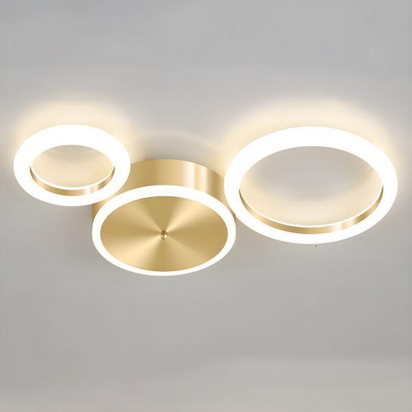 Contemporary Gold LED Flush Mount Ceiling Light, Geometric Layered Ring Fixture with Acrylic Diffuser - 3 110V-120V Warm Light