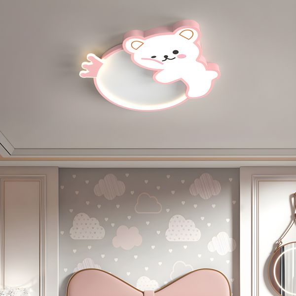 Whimsical Kids LED Ceiling Light, Creative Bear Design with Eye-Caring Glow, Flush Mount Fixture - Pink 110V-120V 18" White Light