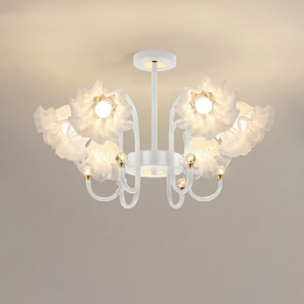 French Country Floral Semi Flush Mount Light with Crystal Accents - 110V-120V 6