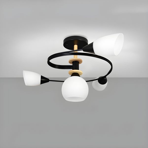 Scandinavian Semi Flush Mount Ceiling Light with Natural Wood Accents and Frosted Glass Shades - 4 110V-120V Black