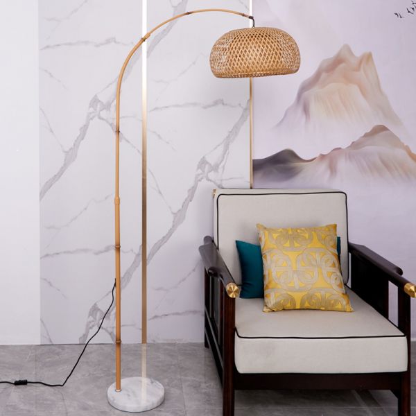 Bohemian Arc Floor Lamp with Woven Rattan Shade and Marble Base - 110V-120V 11"