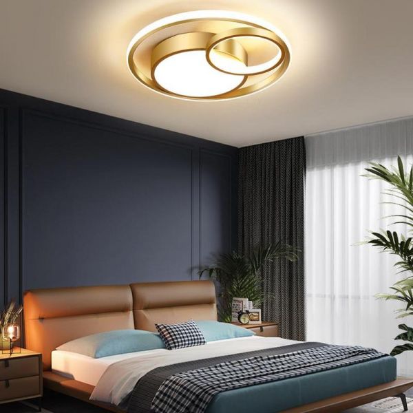 Contemporary Minimalist LED Flush Mount Ceiling Light, Geometric Double Ring Fixture for Bedroom & Living Room - 110V-120V White Light 16" Gold
