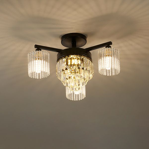 Luxe Crystal Glass Flush Mount Chandelier, Radiant Multi-Light Ceiling Fixture - 5 Black 110V-120V
