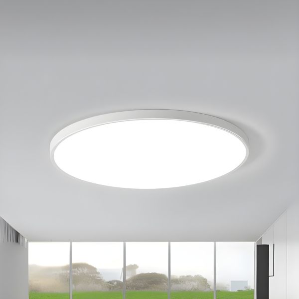 Minimalist Ultra-Slim LED Flush Mount Ceiling Light, Geometric Low Profile Fixture with Glare-Free Acrylic Shade - 110V-120V 16" Round White Light